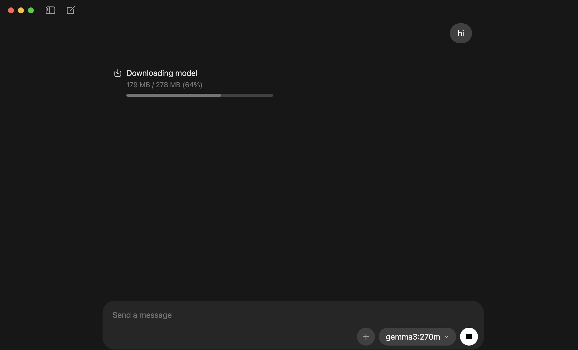 Note: you should have download the model first. If you have not, either use the previous step or run this command in the termina/command prompt first: ollama pull gemma3:270m